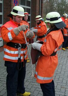 Von Januar bis Ende Februar 2004 lernten 17 Mitglieder der Freiwilligen Feuerwehren der Samtgemeinde Harsefeld, worauf es bei Einsätzen im Feuerwehralltag ankommt. Nach Rechtsgrundlagen, theoretischem Verständnis vom Brennen und Löschen, der Wasserversorgung, der technischen Hilfeleistung und der Unfallverhütungsvorschriften wurde auch eifrig die praktische Durchführung geübt. Kürzlich stellten die Absolventen während einer Prüfung ihre Kenntnisse unter Beweis. "Wir hatten einen sehr motivierten Teilnehmerkreis" waren sich die Ausbilder einig. Im Rahmen einer kleinen Feierstunde konnten alle Teilnehmer ihre Zertifikate in Empfang nehmen. | ||||||||||||||||||||||||||||||||||||||||||||||||||||||||||||||||||||||||||||||||||||||||||||||||||||||